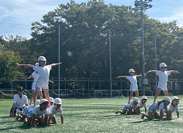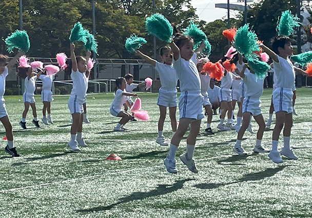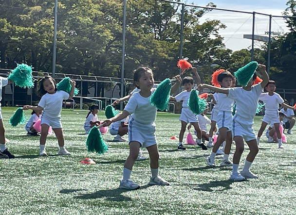 年少さんは広いグラウンドや大勢のお客様に少々戸惑いながらも元気に走ったりダンスをしていました。