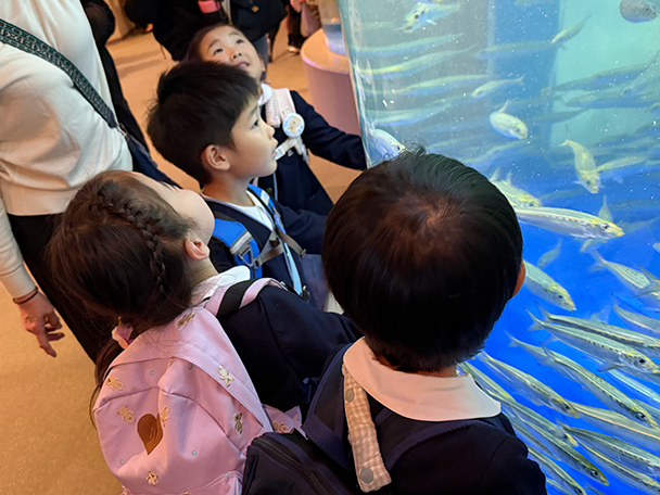 年少さんと年長さんはお休みにして、先生たち全員と年中さんで水族館に行きました。