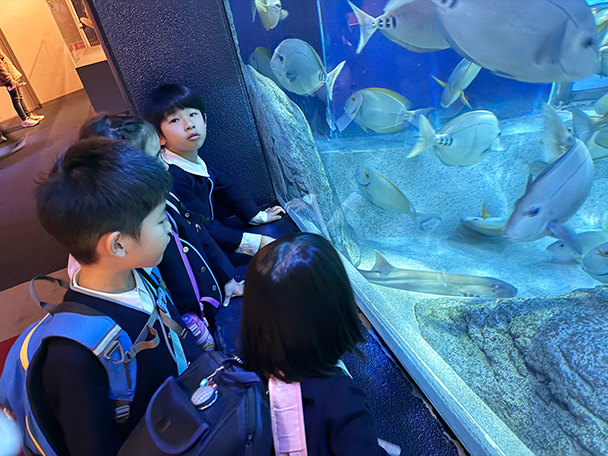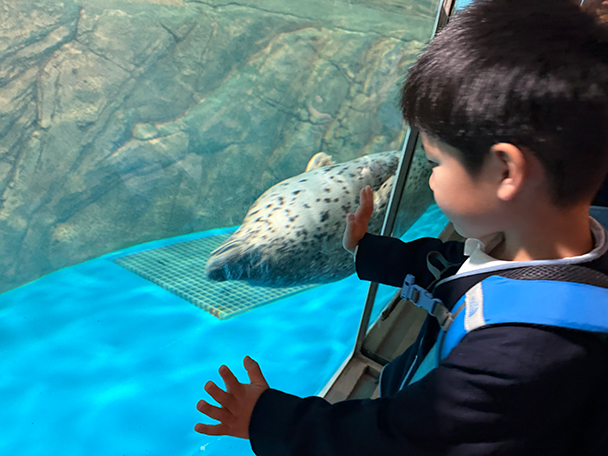 イルカのショーに歓声をあげ、館内ではそれぞれに気に入った魚や生き物を見つけていました。