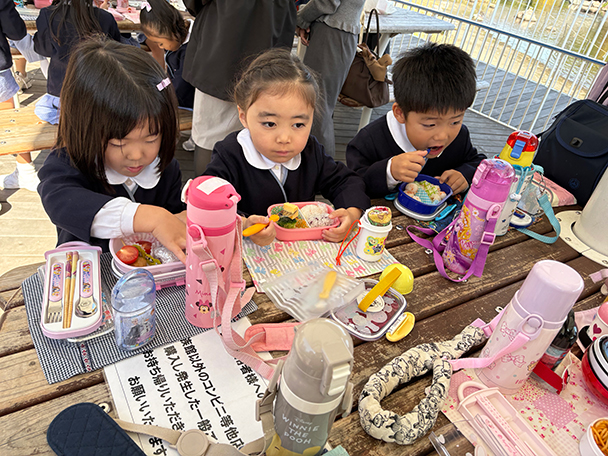 外でお弁当を食べ、年中さんだけの特別な1日となりました。