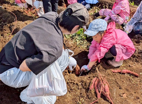 お芋が入った重い袋を保護者の方と一緒に持つ子どもたちの顔は、達成感と嬉しさに満ち溢れていました。