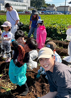 お芋を掘った後は、美味しいお弁当をお友達と一緒に楽しくいただき、お菓子交換も行い、先生たちと元気いっぱい走り回りました。