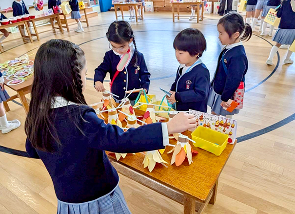 また、お店屋さん前日には年中・年少組に向けてどのようなお店や品物があるかPRをしました。